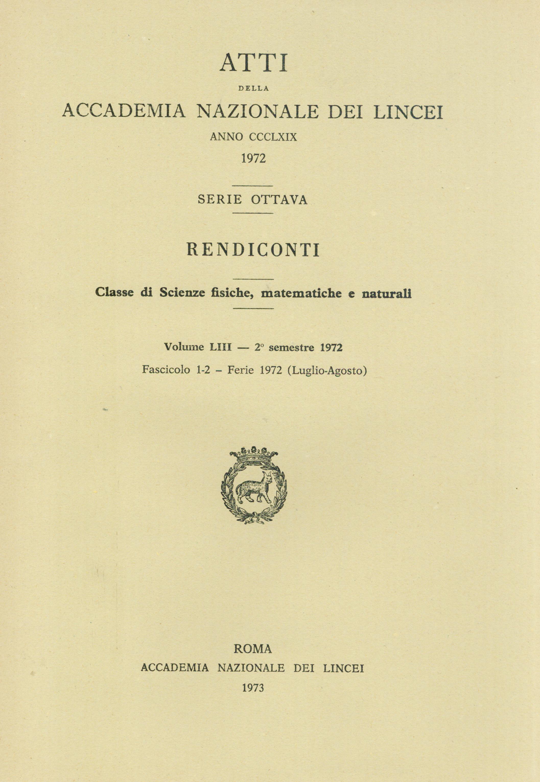 | Home -> Atti Accad. Naz. Lincei Cl. Sci. Fis. Mat. Natur. Rend., Serie 8 -> Vol. 53 (1972), n. 1-2 |