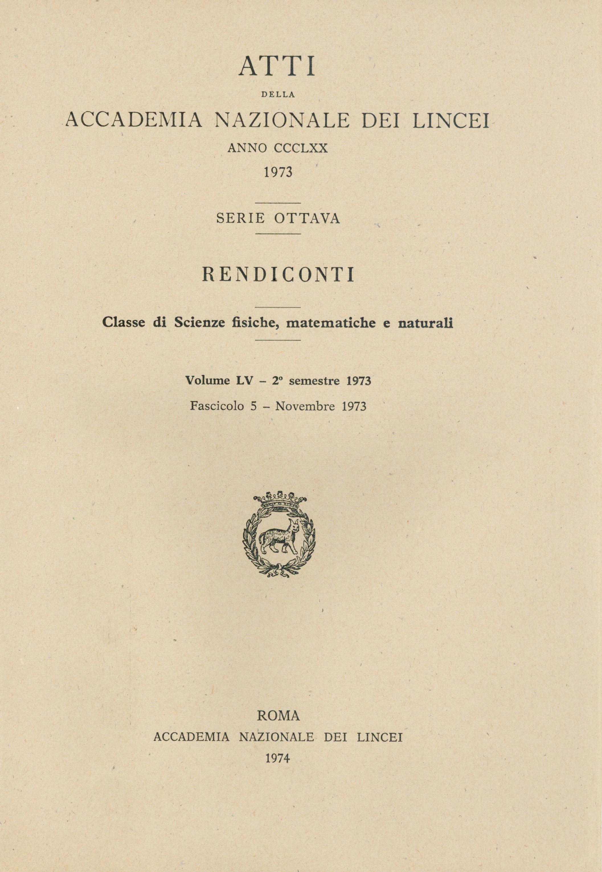 | Home -> Atti Accad. Naz. Lincei Cl. Sci. Fis. Mat. Natur. Rend., Serie 8 -> Vol. 55 (1973), n. 5 |