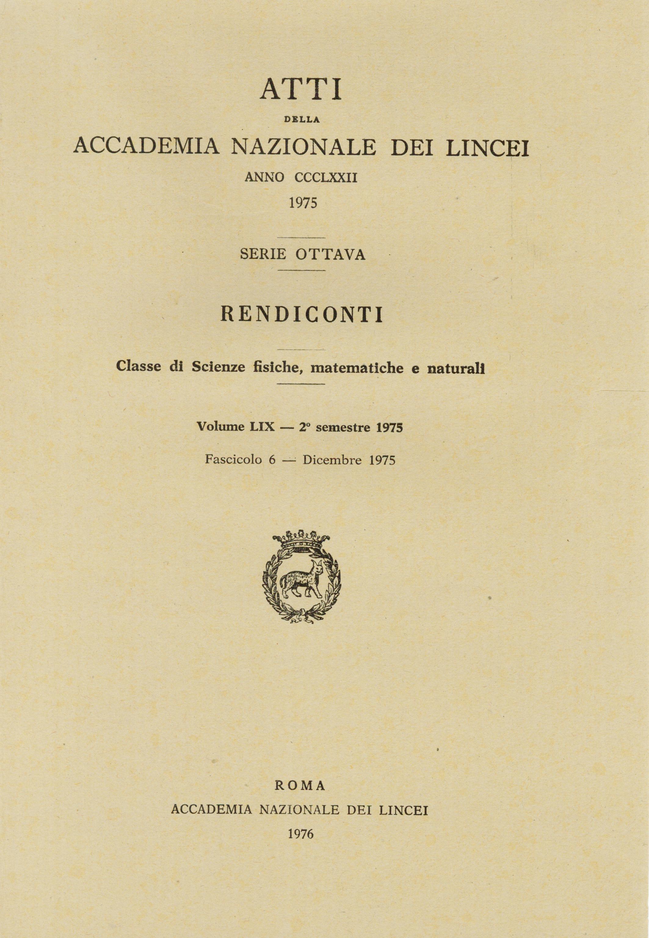 | Home -> Atti Accad. Naz. Lincei Cl. Sci. Fis. Mat. Natur. Rend., Serie 8 -> Vol. 59 (1975), n. 6 |