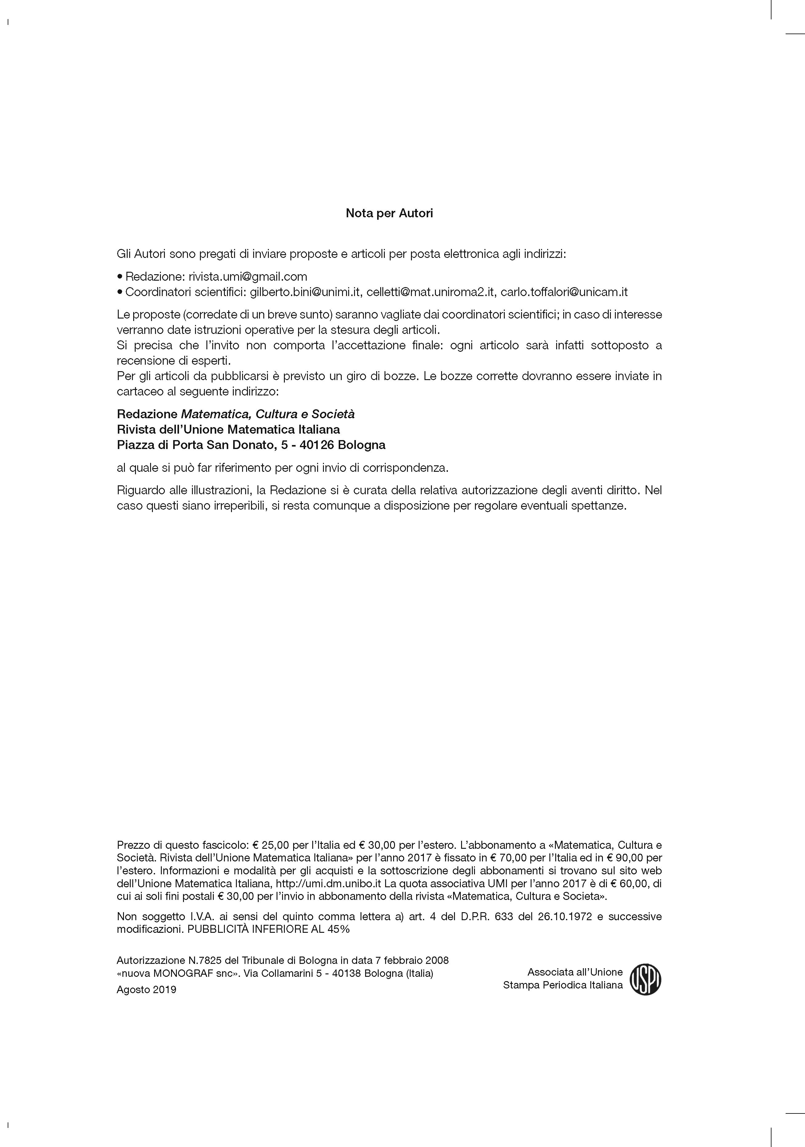 | Home -> Matematica, Cultura e Società, Serie 1 -> Vol. 4 (2019), n. 2 |
