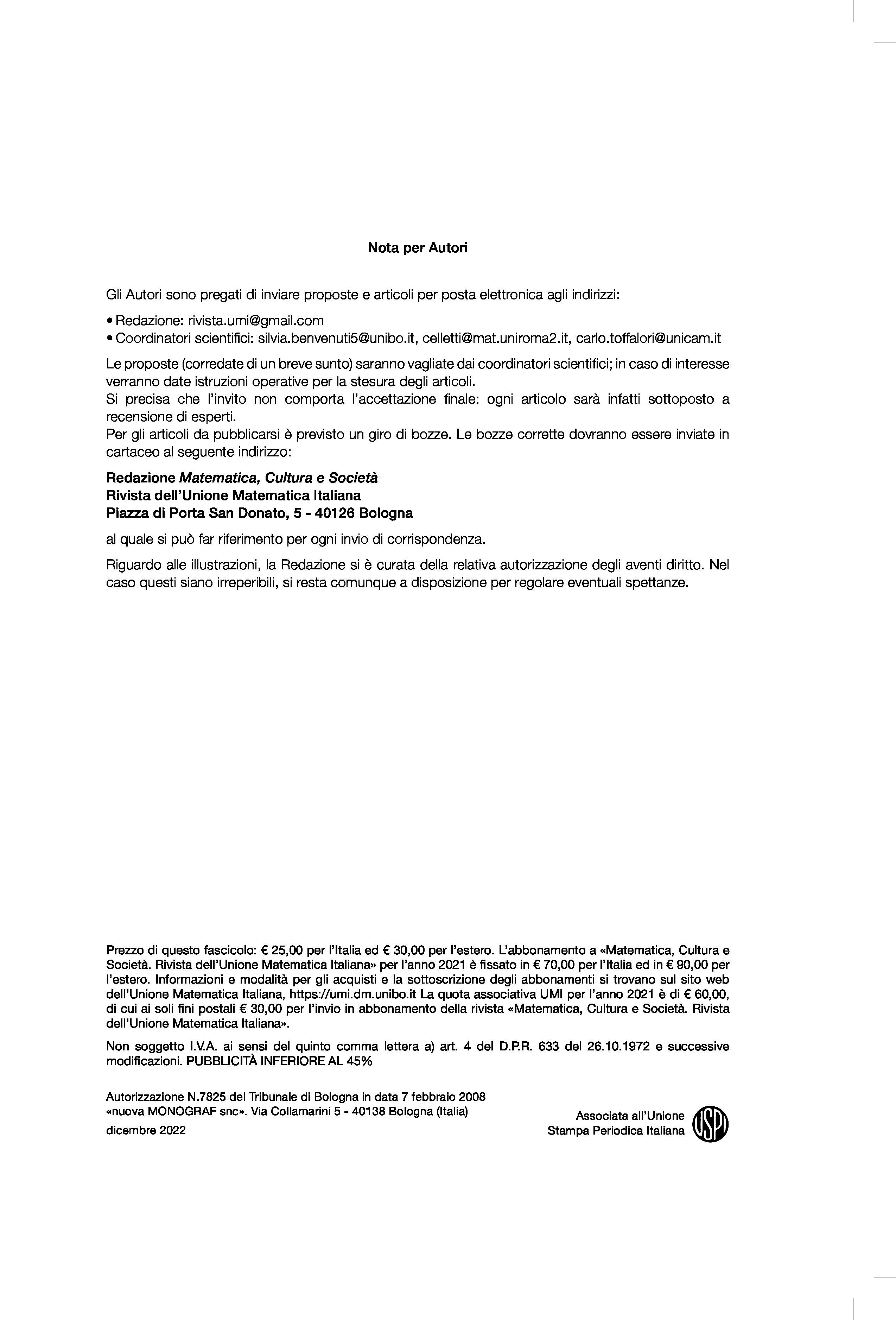 | Home -> Matematica, Cultura e Società, Serie 1 -> Vol. 8 (2023), n. 3 |